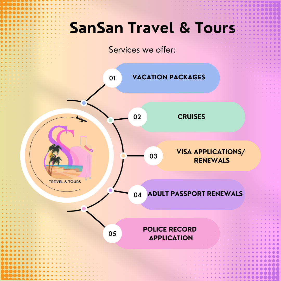 At SanSan Travel & Tours we design personalized vacation packages that cater to every member of your family. From thrilling adventures to relaxing getaways, we go above and beyond to ensure your journey is filled with joy, laughter, and cherished moments. With meticulous attention to detail, we orchestrate experiences that inspire, connect, and enrich the lives of families around the globe.